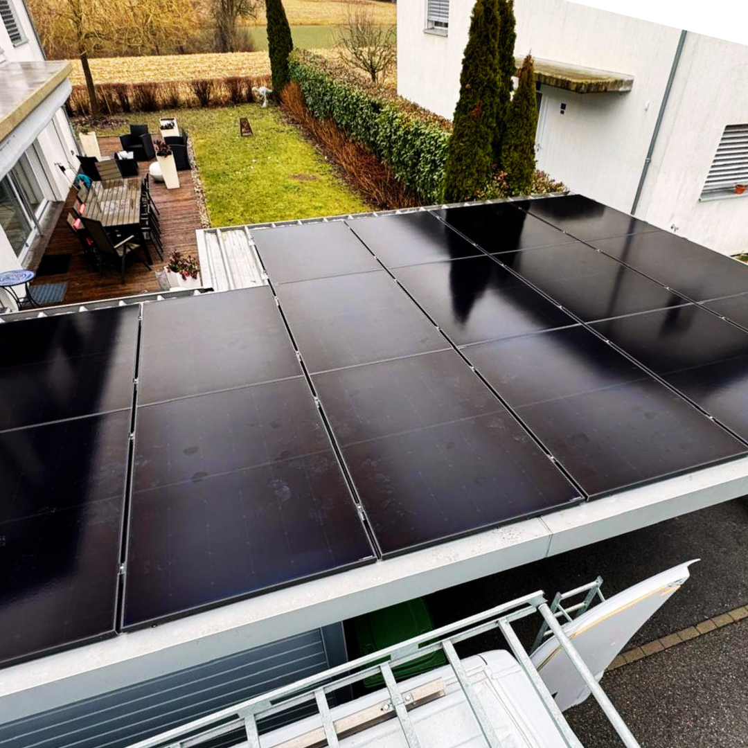 20 panneaux Megasol, 20 micro-onduleurs Enphase et une batterie de stockage 5P Flexphase — installés de A à Z par notre équipe interne sur une villa à St-Légier, face au Lac Léman.